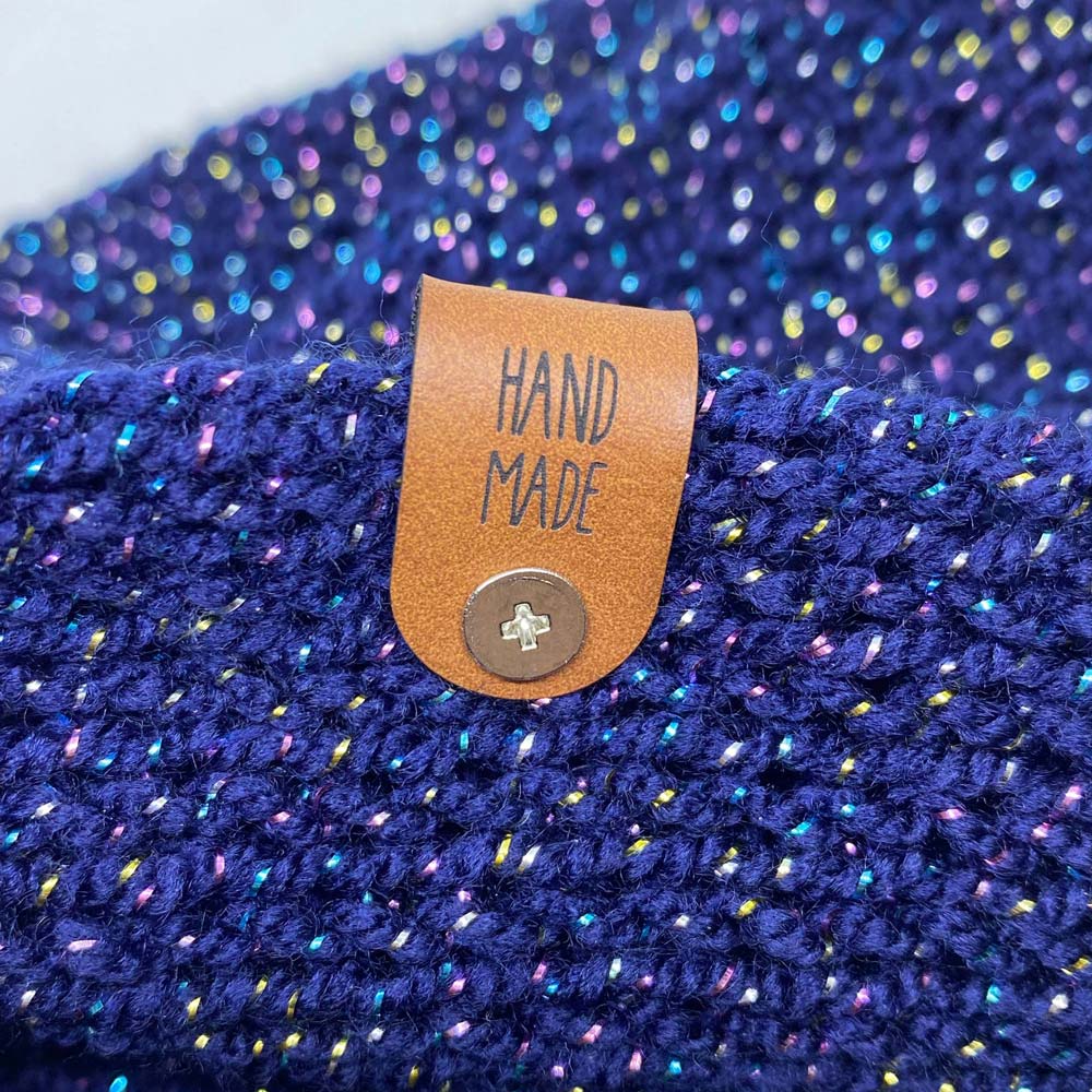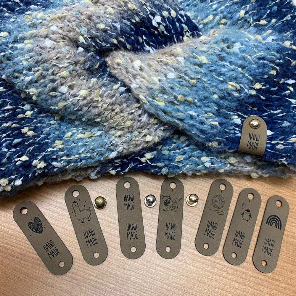 Durch die Nieten sind deine Strick- und Häkelsachen im Handumdrehen professionell gelabelt und das ohne Nähen zu müssen