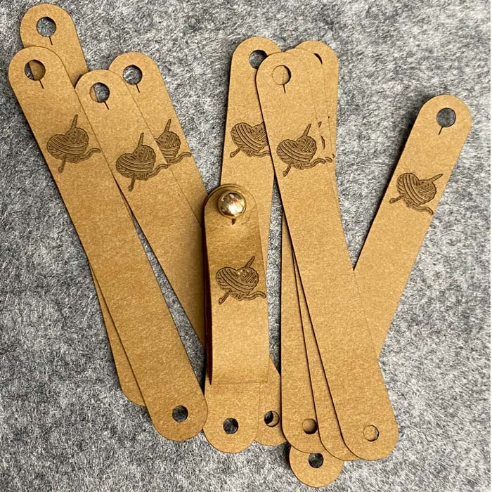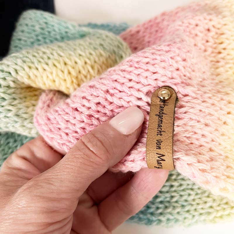 Durch die Nieten sind deine Strick- und Häkelsachen im Handumdrehen professionell gelabelt und das ohne Nähen zu müssen